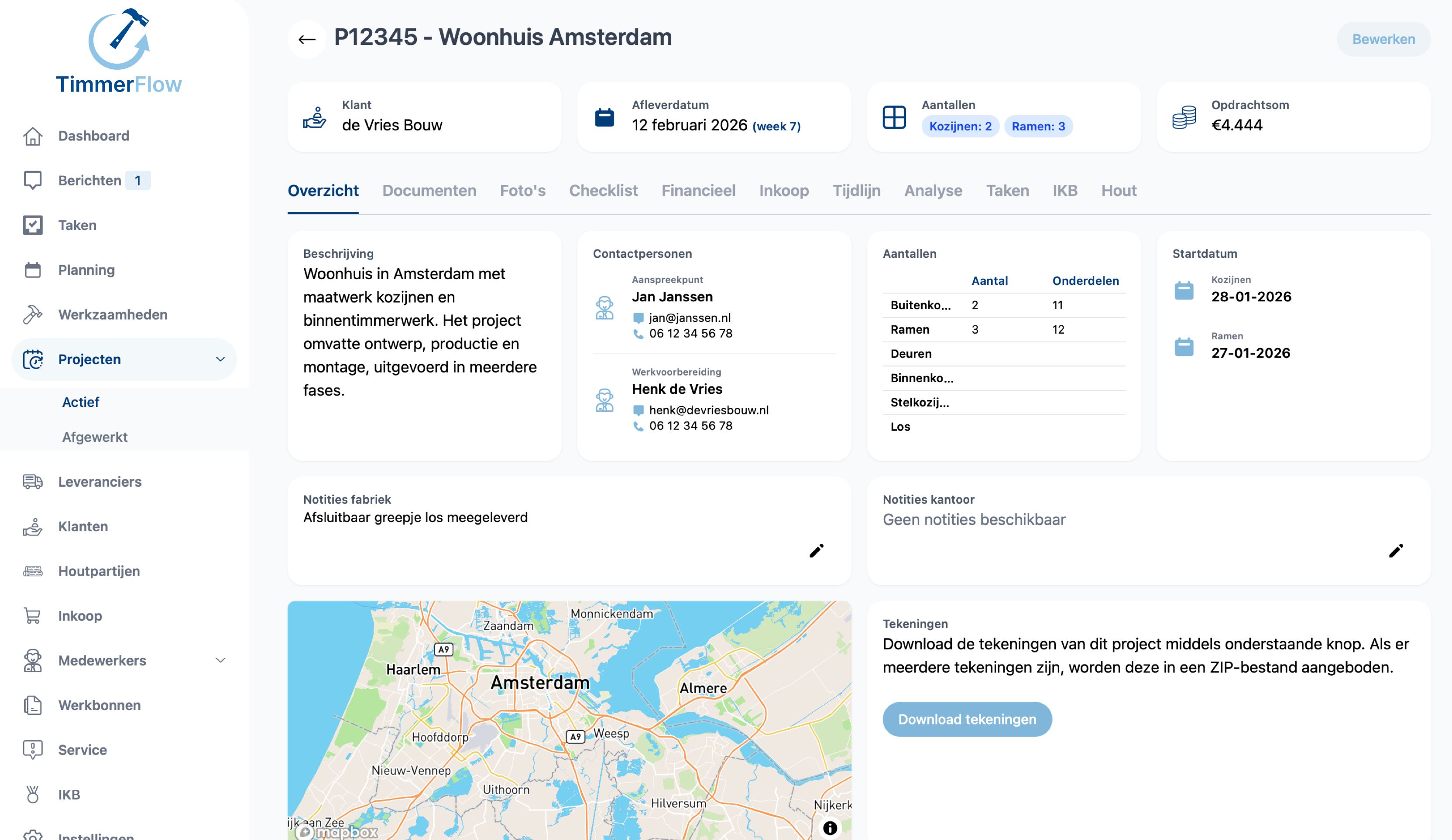 Van plannen tot kwaliteit en van inzicht tot uitvoering. Timmerflow brengt rust, overzicht en grip door alles logisch te bundelen in drie krachtige modules.