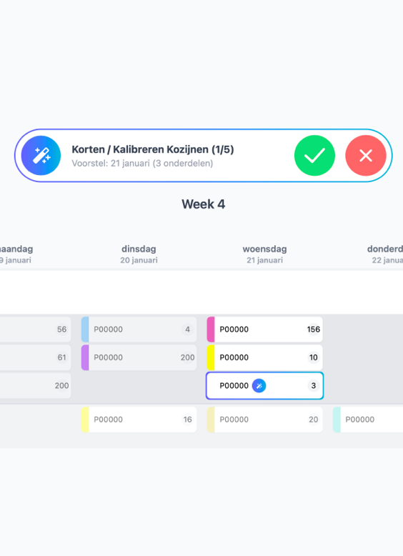 AI-gestuurde planning op basis van real-time fabrieksdata, historie en capaciteit.